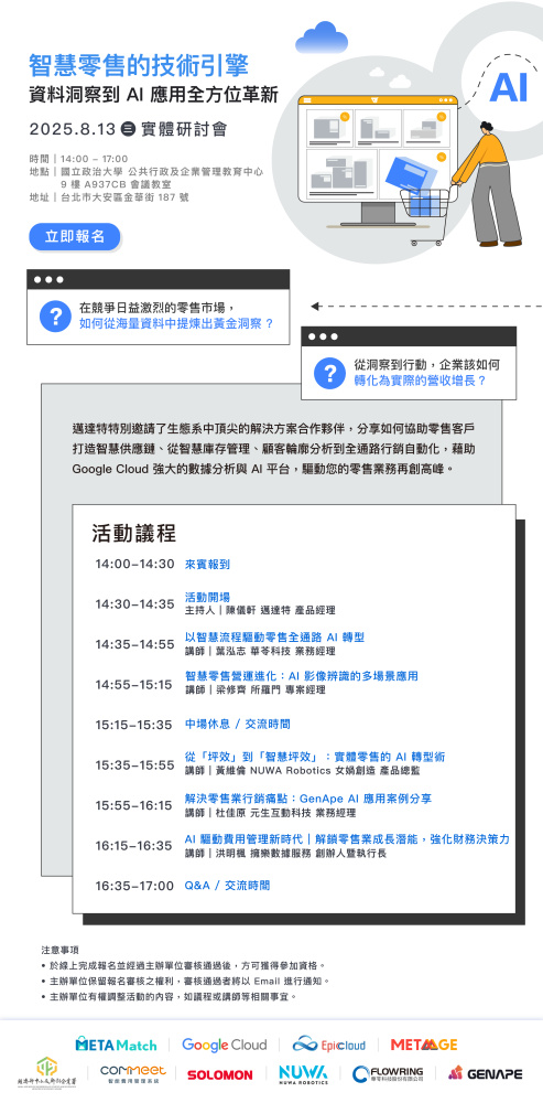 2025.08.13 Google 實體研討會:智慧零售的技術引擎|資料洞察到 AI 應用全方位革新...