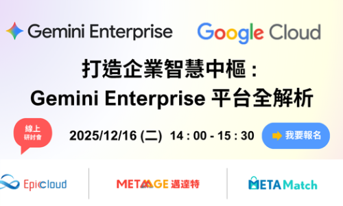 https://www.epicloud.com.tw/wp-content/uploads/2025/11/600314.png 314 600 lin wendy https://www.epicloud.com.tw/wp-content/uploads/logo-svg.svg lin wendy2025-11-17 16:35:042025-11-18 12:20:172025.12.16 Google Cloud 線上研討會:打造企業智慧中樞|Gemini Enterprise 平台全解析