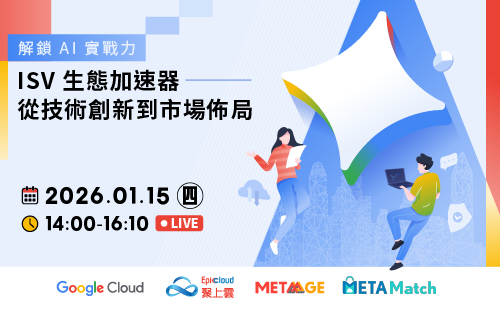 lin wendy2025-12-23 16:50:122026-01-15 10:08:052026.01.15 Google Cloud 線上研討會:解鎖 AI 實戰力 ISV生態加速器 — 從技術創新到市場佈局