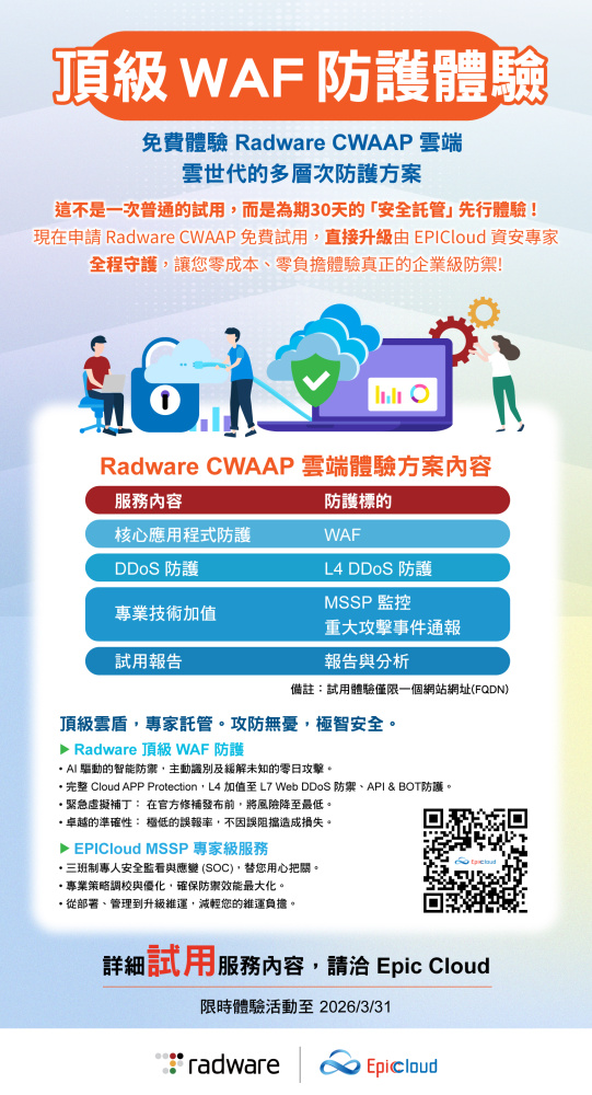立即申請 Epic Cloud 頂級企業級防禦,零成本、零負擔,限時體驗活動至 2026/3/31!